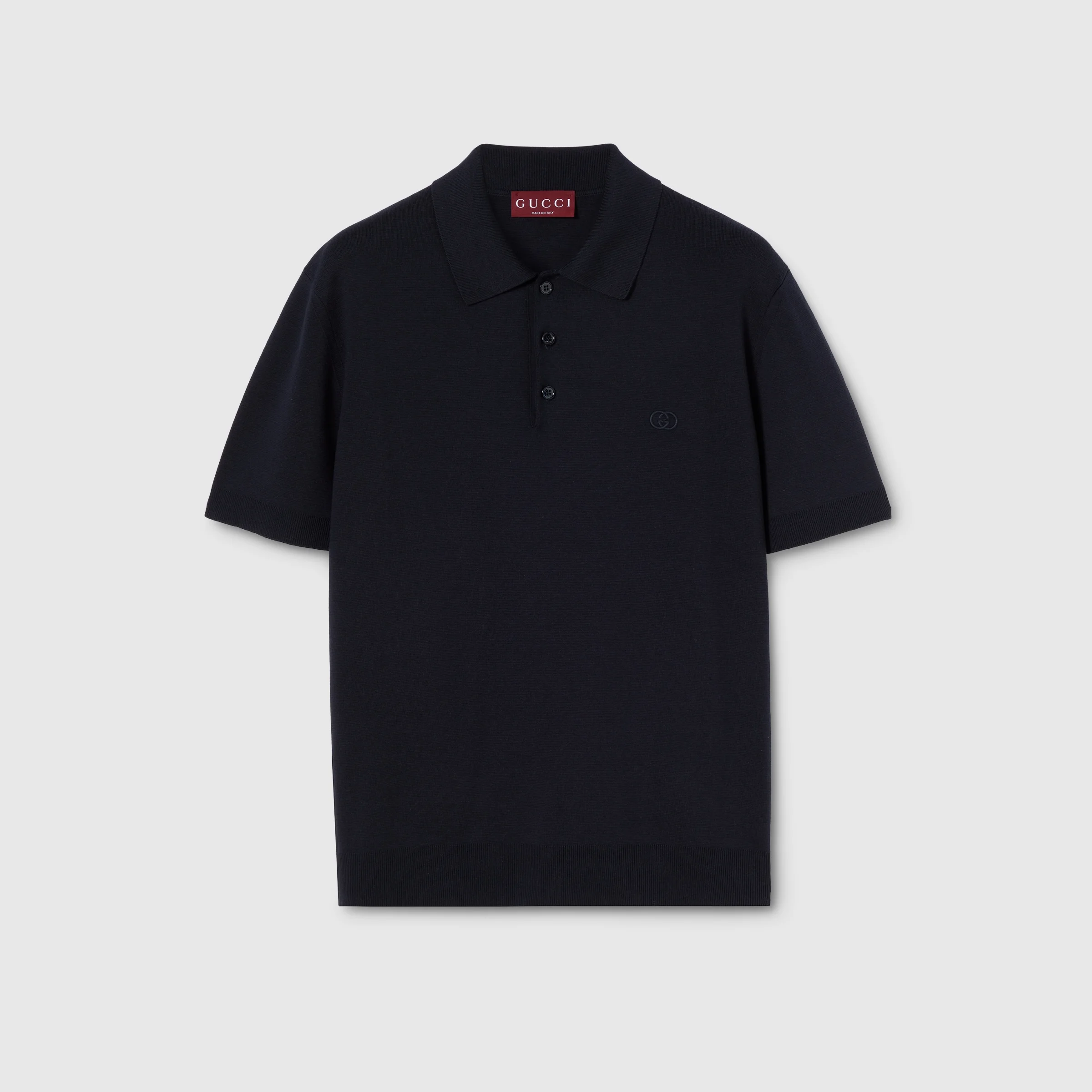 Silhouettes, fabrics, and craftsmanship draw from the House codes and speaks to the present without losing sight of the heritage. Crafted from knit silk cotton, this polo shirt is enriched with an Interlocking G embroidery. - Dark blue stitch knit silk cotton - Interlocking G embroidery - Polo collar - Short sleeves - Length: 25.9" based on a size S - Fabric: 55% Silk, 45% Cotton - Details: 46% Silk, 35% Cotton, 18% Polyester, 1% Elastane - Embroidery: 100% Polyester