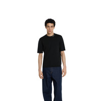 The Pre-Fall 2025 collection spotlights essential silhouettes with emblematic details from daywear to eveningwear. This T-shirt is made from black silk cotton knit and decorated with a Gucci intarsia. - Black silk cotton knit - Gucci intarsia - Crewneck - Short sleeves - Rib trim - Length: 25.6"; Shoulder: 16.9"; Chest: 20.1"; Sleeves length: 11"; based on a size M - Made in Italy