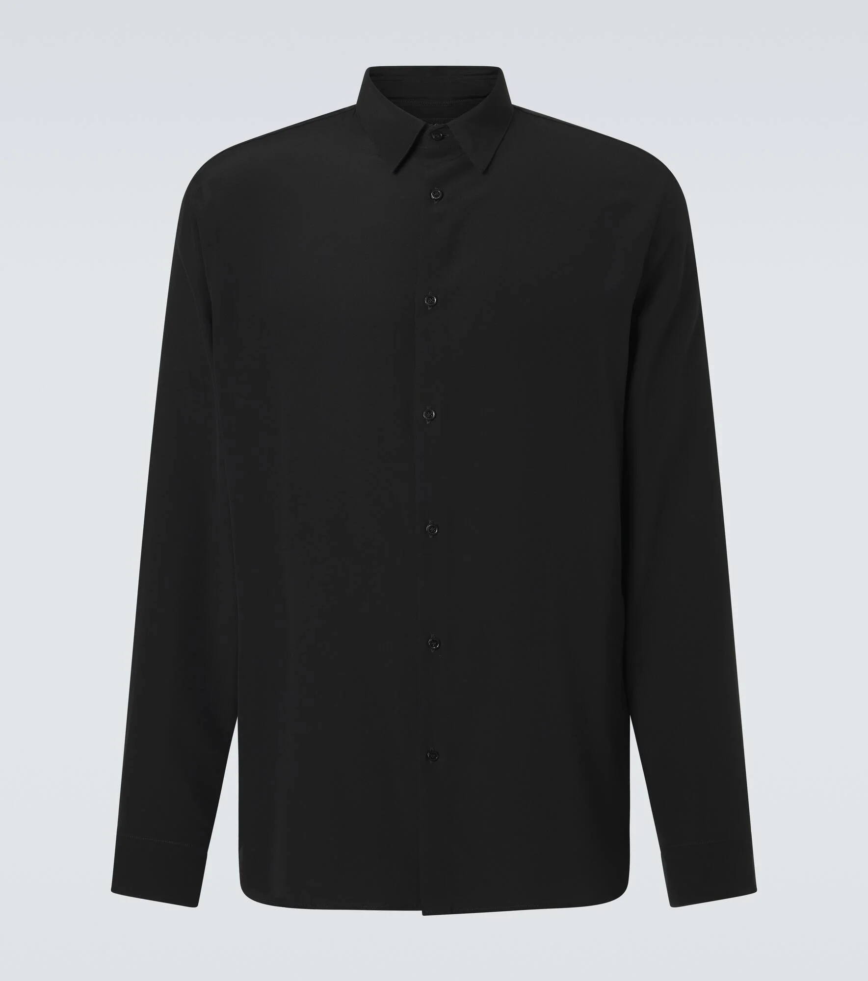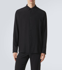 An unwavering commitment to craftsmanship and heritage sets Gucci apart. Equal parts understated and sophisticated, this shirt is made from silk crepe de chine for a fluid, effortless fit. Product Details - Material: 100% silk - Care instructions: dry clean - Made in Italy - Color: black - Designer color name: Black - Collar: classic (Straight point) - Closure: buttoned front - Cuff: one button - Contains non-textile parts of animal origin - Item number: P01151317 Size & Fit - True to size - Without pleats in the back - Straight fit - Non-stretchy fabric - Falls below the hip - Height of model is 189cm-74.5" and wears a size 16