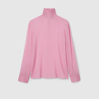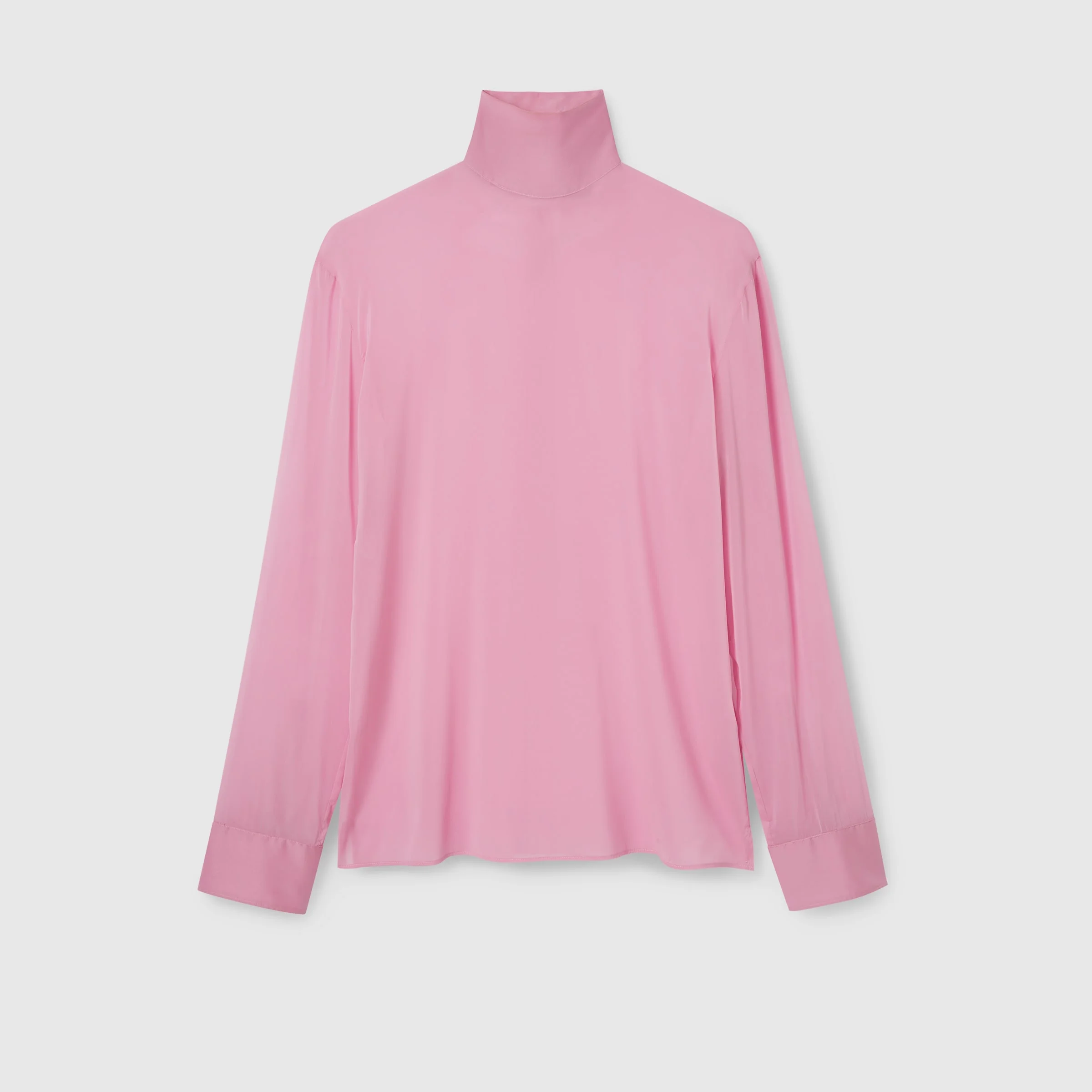 In the Fall Winter 2025 collection, tailoring is reimagined with unexpected ease. A modern take on a classic design, this shirt is characterized by its clean construction and distinctive back closure. The concealed button placket and buttoned cuffs enhance the minimal silhouette, offering a refined, contemporary look. - Bright pink silk stretch chiffon - Stand collar - Long sleeves - Buttoned cuffs - Covered button closure at the back - Regular fit - Total length: 27.9"; Shoulder: 18.7"; Chest: 20"; Sleeve length: 25.5"; (size 46 IT) - Made in Italy
