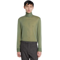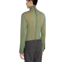 In the Fall Winter 2025 collection, tailoring is reimagined with unexpected ease. A modern take on a classic design, this shirt is characterized by its clean construction and distinctive back closure. The concealed button placket and buttoned cuffs enhance the minimal silhouette, offering a refined, contemporary look. - Forest green silk stretch chiffon - Stand collar - Long sleeves - Buttoned cuffs - Covered button closure at the back - Regular fit - Total length: 27.9"; Shoulder: 18.7"; Chest: 20"; Sleeve length: 25.5"; (size 46 IT) - Made in Italy