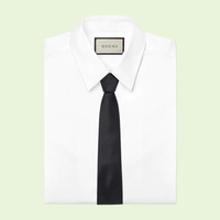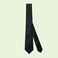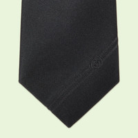 The plain black silk tie is enriched with an embroidered stripe and Interlocking G detail on the front. As well as adding visual texture to the silk, the emblem pays homage to the House's Founder Guccio Gucci. - Black silk - Interlocking G embroidered detail - 2.8"W x 58.3"L - Made in Italy