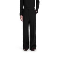In the Fall Winter 2025 collection, essential and sharp lines define the silhouette through refined fabrics and classic British tailoring elements. These pants feature a curtained waistband with Gucci embroidery, finished with precise detailing. - Black silk twill - Curtained waistband with Gucci embroidery - Front pleats - Side pockets - Back welt pockets - Loose fit - Length: 51.1"; Waist: 17.3"; Hips: 20.4"; Hem width: 11.8"; (size 46 IT) - Made in Italy