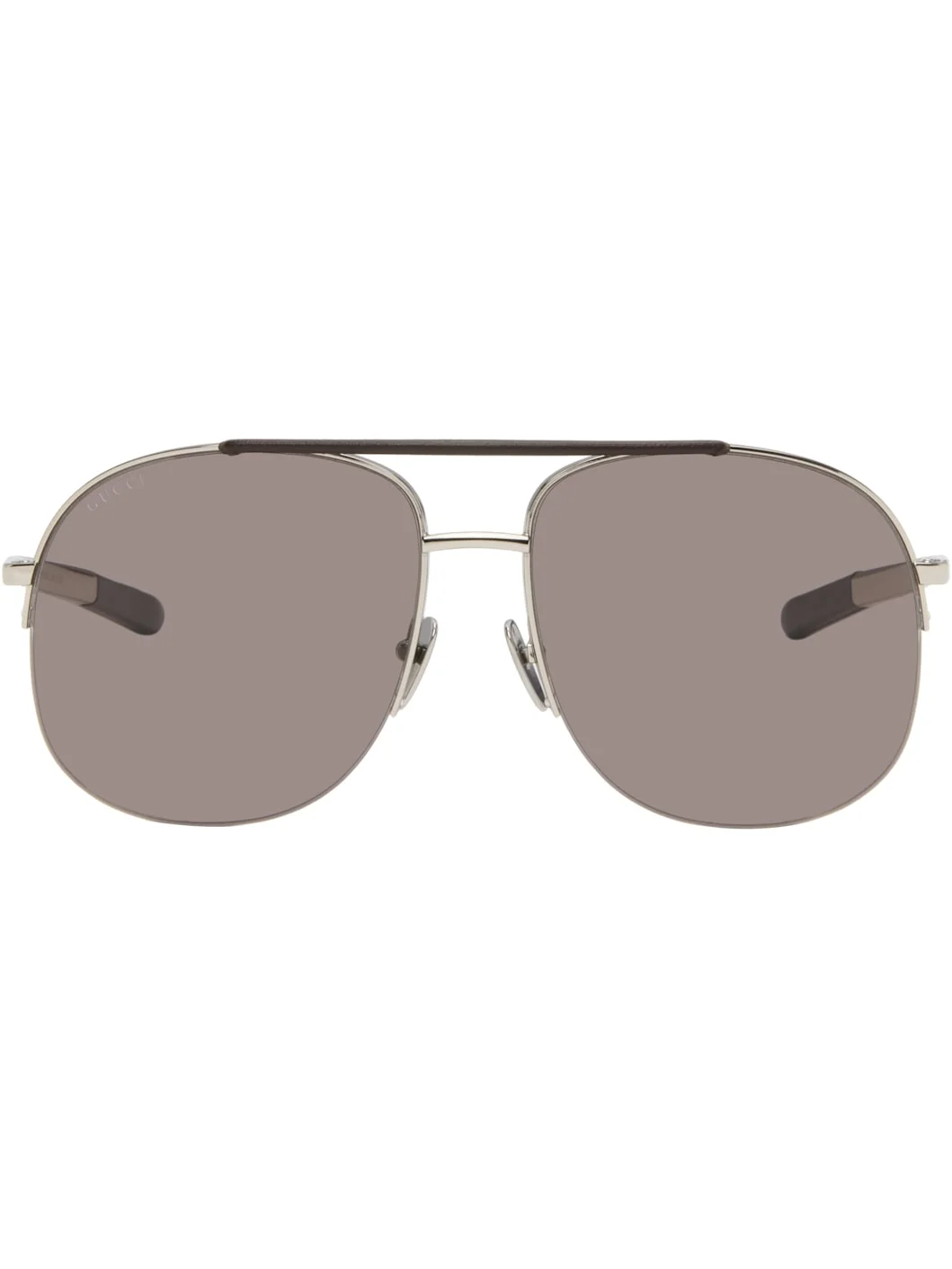 Aviator-style metal-frame sunglasses. · Gray lenses · 100% UVA/UVB protection · Logo etched at lens · Top bar · Adjustable metal nose pads · Logo embossed at temple tips · Includes pouch · Size: 61.16 135 Supplier color: Silver/Silver/Grey Metal. Made in Italy 261451M134043