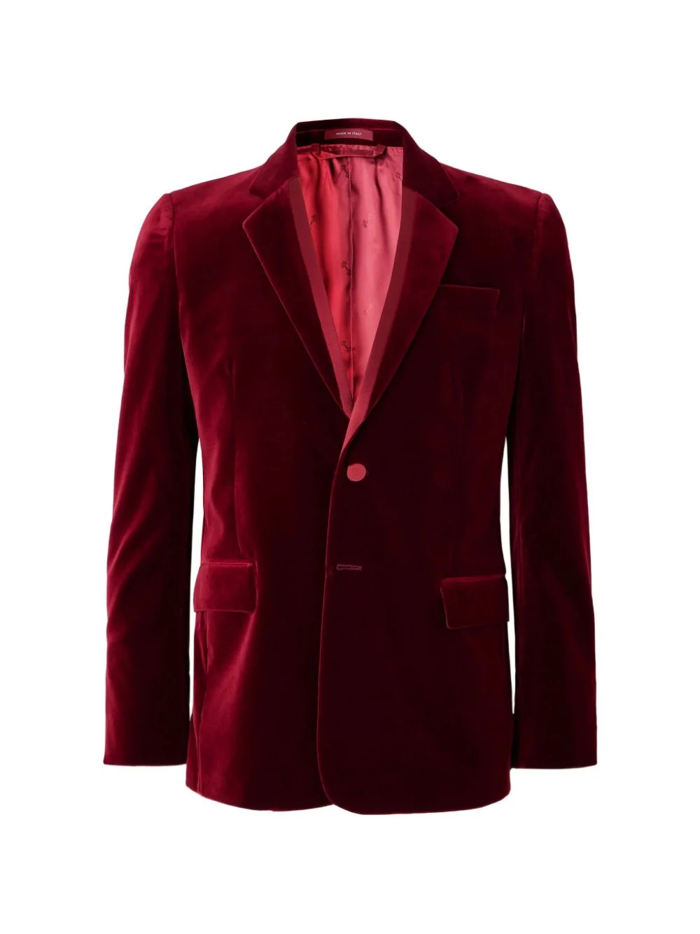single-breasted blazer Highlights - Amaranth red - Velvet - Satin inlay - Bodycon fit - Single-breasted - Notched lapels Imported Composition Cotton 50%, Velvet 50% Washing instructions Read Manufacturer Guidelines