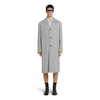 In the Spring Summer 2025 collection, formal wear unfolds in varying silhouettes. This single-breasted coat in light grey wool presents an embossed Gucci logo and is completed with a long slit on the back. - Light grey wool - Fully lined - Single-breasted - Notch lapel - Embossed Gucci logo - Back slit - Front button closure - Total length: 47.2"; Shoulder: 20.5"; Sleeves length: 36.6"; based on a size 48 IT - Made in Italy - The product shown in this image is a size 48 (IT)