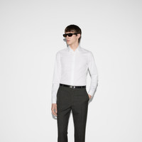 White becomes a new canvas to fill with a fresh statement. The creative direction's painterly stroke creates a rich and versatile offe from sportswear to formal pieces. This slim fit shirt has been crafted from a stretch cotton poplin and reveals a bee embroidery on the reverse. - White stretch cotton poplin - Bee embroidery - Point collar - Long sleeves - Neck width: 15.9"; based on a size 15+ - Shoulder drop: 16.5"; based on a size 15+ - Chest: 42.1"; based on a size 15+ - Sleeves length: 35.8"; based on a size 15+ - Button closure - Slim fit - Length: 29.5"; based on a size 15+ - Made in Italy - The product shown in this image is a size 15+