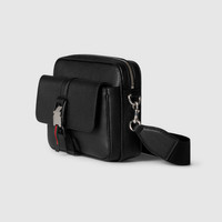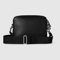This crossbody bag is crafted from a soft grainy leather that lends a supple quality to the silhouette. Contemporary design details, such as magnetic metal closure and Web loop detail, make this everyday accessory a desirable companion. - Black soft grainy leather - Web detail - Cotton linen lining - Inside: 1 zip pocket - Outside: 1 front flap pocket and 1 D-ring - Adjustable canvas shoulder strap with 20.8" drop; Length: 35.4" - 57.5" - Zip and magnetic metal closure - Small: 9"W x 7.5"H x 4"D - Weight: 1.8lbs approximately - Made in Italy