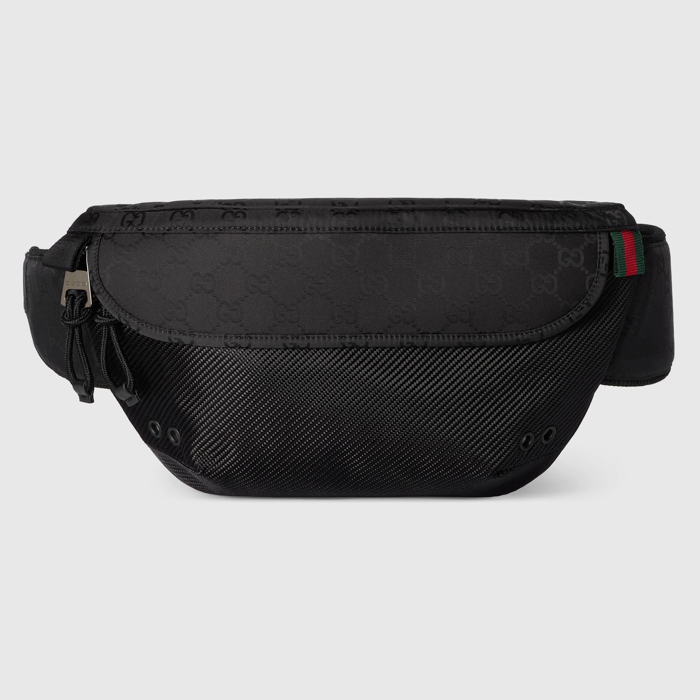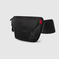 Part of the Cruise 2025 collection, the men's bag selection blends sleek lines with a sporty attitude. This belt bag in soft yet resistant black nylon provides a sophisticated backdrop for the allover GG motif. Other signature details include a green and red Web detail. - Black GG nylon - Nylon lining - Web detail - Inside: 1 zip pocket - Outside: 1 back zip pocket, 1 zip pocket on the strap - Strap: 35.4" - 51.2" - Magnetic metal closure and zip closure - Small: 12.6"W x 6.7"H x 2"D - Weight: 1.1lbs approximately - Made in Italy