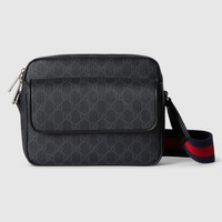 Part of the Pre-Fall selection, crossbody bags are ideal for everyday looks. Revitalizing functional pieces with a modern-day interpretation, everyday accessories are defined by the emblematic monogram. Here, the GG Supreme canvas appears in black, while a Web strap adds a pop of color to the cross-body bag. - Black GG Supreme canvas - Black leather trim - Blue and red Web - Cotton linen lining - Inside: 1 zip pocket - Outside: 1 zip pocket - Adjustable canvas shoulder strap with 21.6" drop; length: 37" - 57.1" - Zip closure - Small: 9"W x 7.1"H x 4.7"D - Weight: 1.6lbs approximately - Made in Italy
