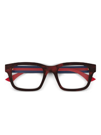 rectangle-frame glasses Highlights - Brown - Red and blue stripe - Acetate material - Rectangle frame - Clear lenses - These glasses come with a protective case. - All glasses from farfetch are sold as non-prescription frames. Made in Italy Composition Acetate 100% SIZE & FIT Measurement Arm Length 5.7 in(14.5 cm) Bridge Width 0.78 in(2 cm) Lens Diameter 1.96 in(5 cm)