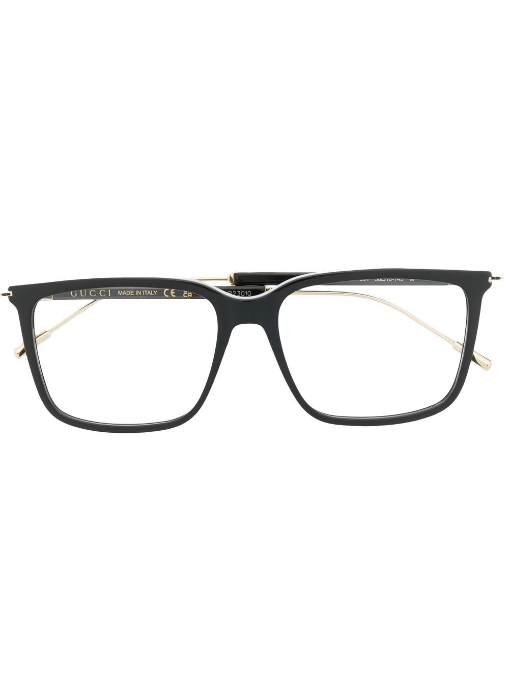 square-frame optical glasses square-frame optical glasses from GUCCI EYEWEAR featuring black, gold-tone, square frame, logo-engraved gold-tone hardware, square frame, clear lenses, straight arms, curved tips, These glasses come with a protective case. and All glasses from FARFETCH are sold as non-prescription frames.. Made in Italy Composition Acetate 100%, Metal 100%