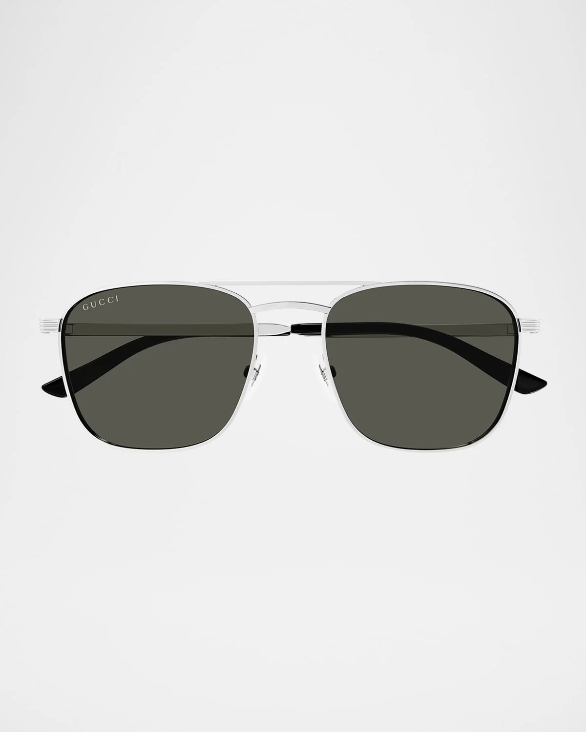 - Gucci "GG1881SM" aviator sunglasses in metal - Lens/bridge/temple (in mm): - 54-18-145 - Solid-color lenses - Right lens logo script - Double nose bridge - Adjustable nose pads - Engraved logo on the temples - Thin arms - Curved, capped temple tips - Metal - 100% UVA/UVB protection - Made in Italy - Proposition 65 warning for California residents