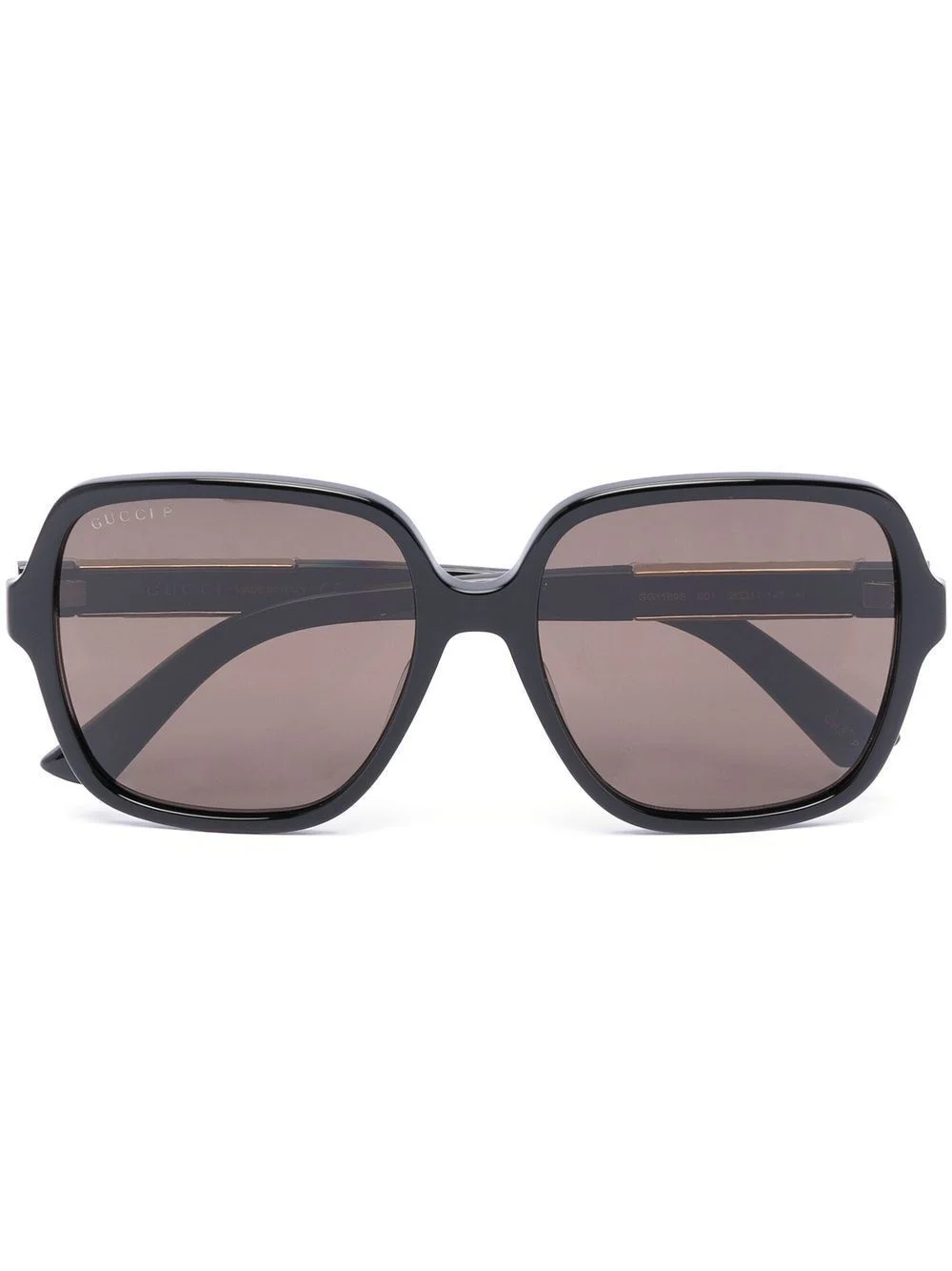 square-frame sunglasses black acetate square frame brown tinted lenses gold-tone logo plaque straight arms curved tips These glasses come with a protective case. Made in Italy Composition Acetate 100% SIZE & FIT Measurement Arm Length 5.7 in(14.5 cm) Bridge Width 0.66 in(1.7 cm) Lens Diameter 2.12 in(5.4 cm) Total Width 5.74 in(14.6 cm)