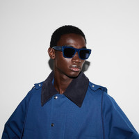 The Cruise 2025 eyewear collection blends an essential silhouette with signature motifs. These square sunglasses are accentuated by a Gucci logo. - Shiny bilayer transparent blue and solid blue - Shiny solid dark blue acetate temples with Gucci logo - Solid dark blue lens - 100% UVA/UVB protection - GG1793S - Temple length: 5.9"; Lens height: 1.7"; Nose bridge length: 0.8" - Frame height 2"; Frame width 5.7"; Hinge to hinge 5.2" - Made in Italy - The eyewear case in the House’s signature Rosso Ancora red hue is complete with a magnetic closure and white interior.