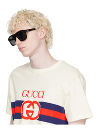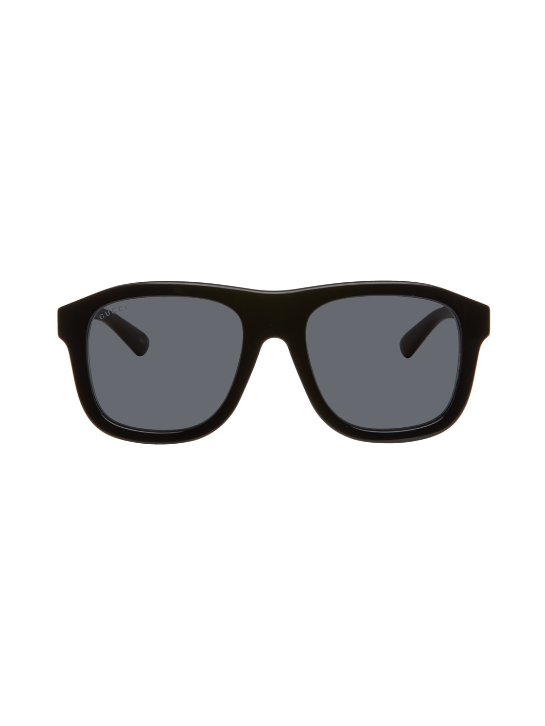 Square acetate-frame sunglasses in black. · Gray lenses with 100% UVA/UVB protection · Logo etched at lens · Integrated nose pads · Logo plaque at temples · Hardside case included · Size: 54.20 145 Supplier color: Black/Black/Gray