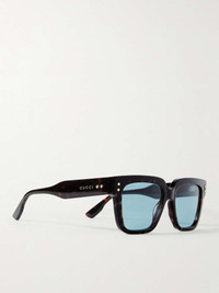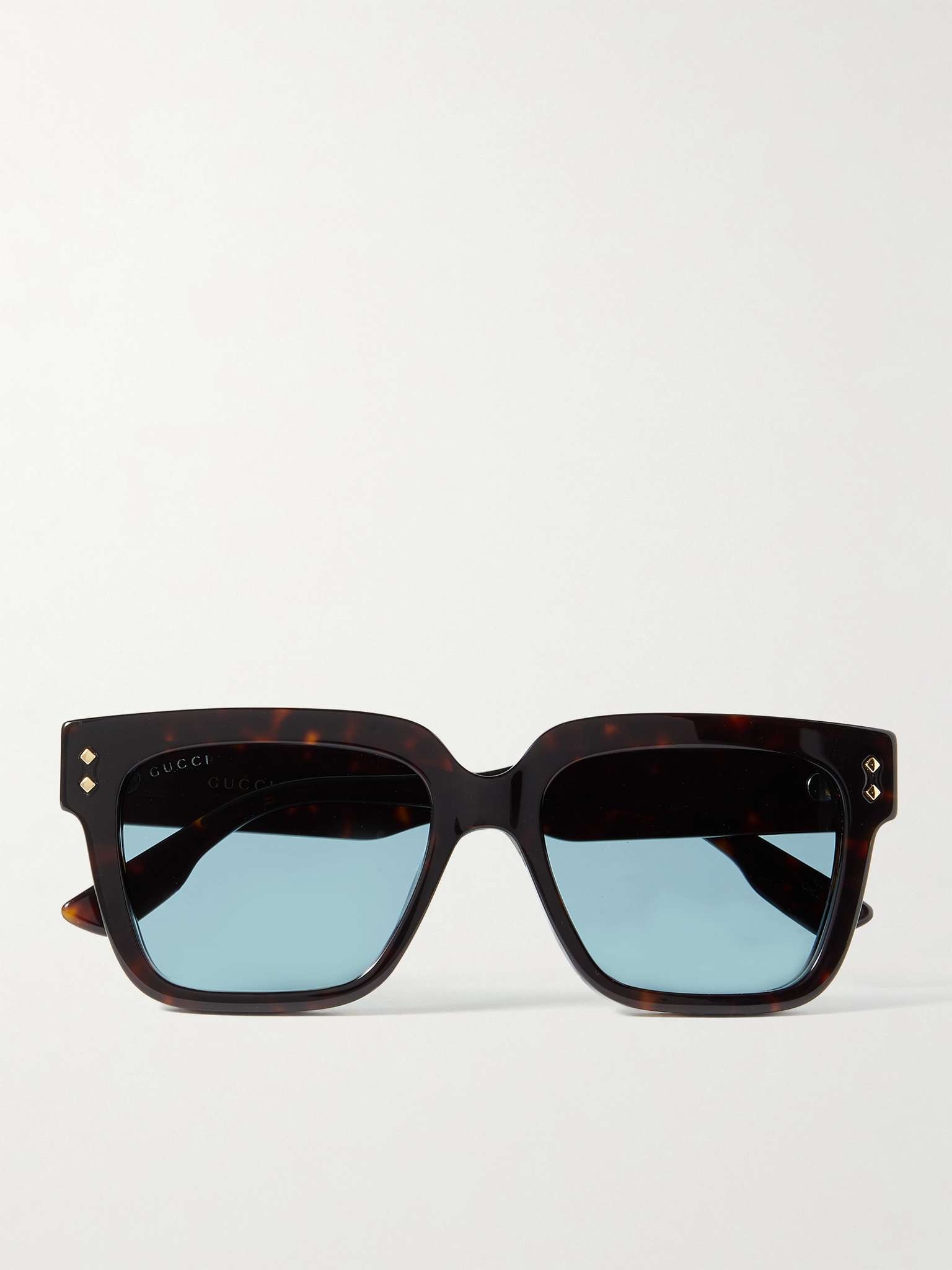 Gucci Eyewear's sunglasses have a retro feel, thanks to the oversized square-frames and blue lenses. They've been made in Italy from thick tortoiseshell acetate and detailed with the brand name along the arms to match the gold-tone, diamond-shaped rivets. Size & Fit - Height: 5cm / 2in - Width: 13cm / 5.1in Details & Care - Tortoiseshell acetate - Come with a case - 100% UV protection - Made in Italy