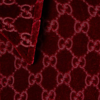 Introducing Spring Summer 2026. This style is inspired by the "Principino" look of La Famiglia. The collection reinterprets the House’s codes through singular personalities and distinctive aesthetic attitudes. Crafted from stretch GG velvet devore, this shirt is finished with Double G buttons. - Bordeaux stretch GG velvet devore - Double G button - Point collar - Long sleeves - Front button closure - Cropped fit - Length: 24"; Sleeves length: 31.8", based on a size 44(IT) - Made in Italy - Fabric: 72% Viscose, 24% Silk, 4% Elastane - Details: 100% Silk