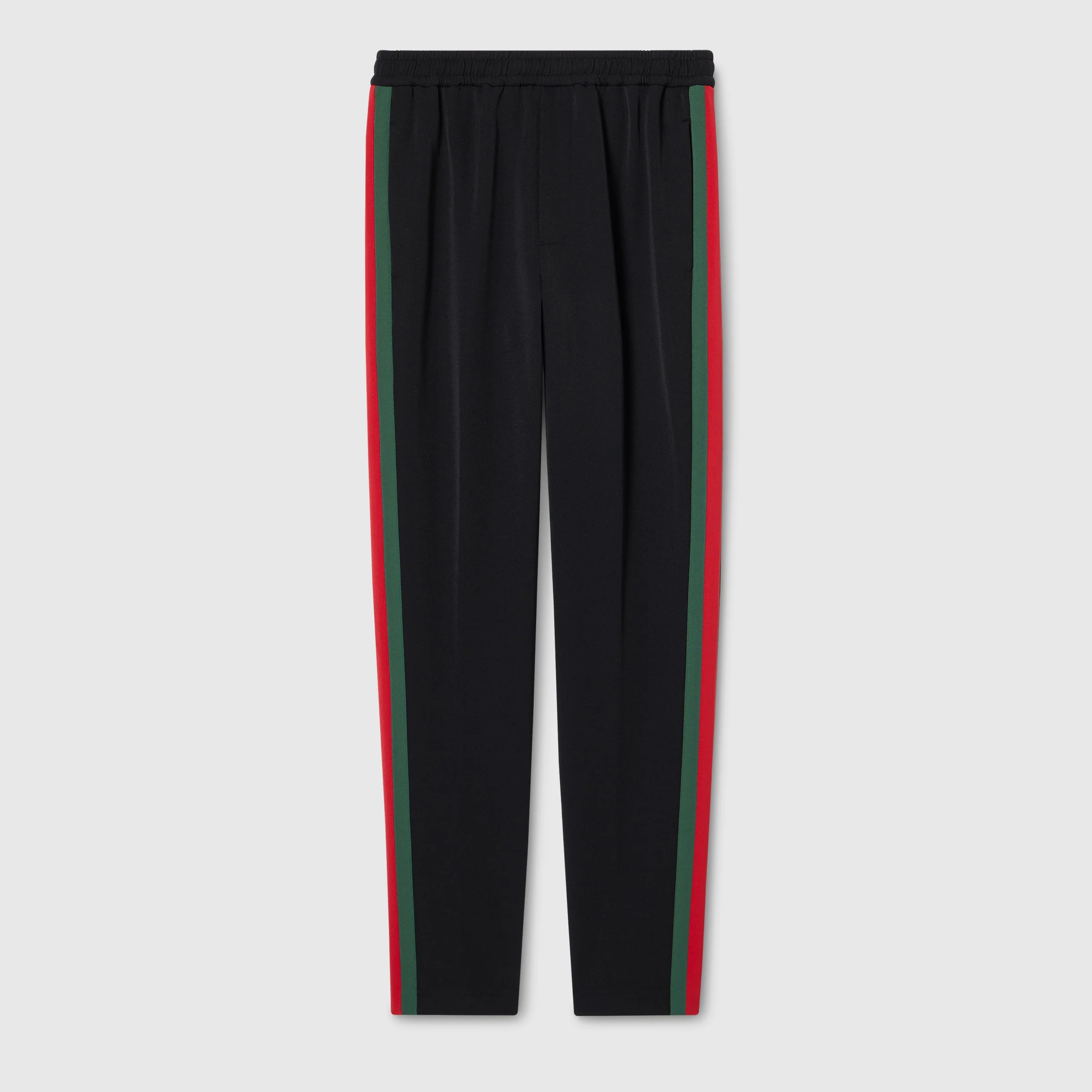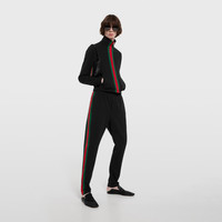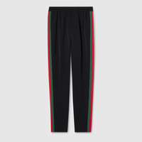 Introducing Spring Summer 2026. This style is inspired by the "Nerd" look of La Famiglia. The collection reinterprets the House’s codes through singular personalities and distinctive aesthetic attitudes. Crafted from stretch nylon gabardine, this pair of sportswear pants is defined by a Web intarsia. - Black stretch nylon gabardine - Web intarsia - Elastic waistband with drawstring - Length: 42,5", based on a size S - Made in Italy
