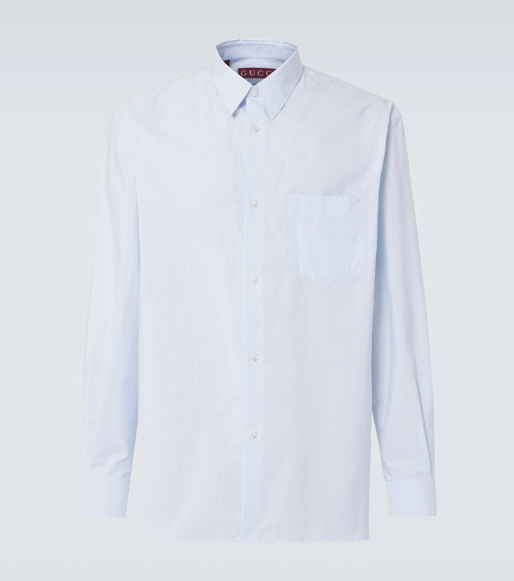 Product Details - Material: 100% cotton - Care instructions: hand wash - Made in Italy - Designer color name: White/Azure - Contains non-textile parts of animal origin - Closure: buttoned placket - Hem: rounded - Collar: classic (Straight point) - Pockets: patch - Cuff: two buttons - Item number: P00939524 Size & Fit - True to size - With pleats in the back - Classic fit - Non-stretchy fabric - Falls below the hip - The model in the picture is 185cm-6'1" and wearing a size 15,5