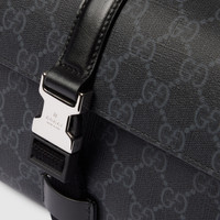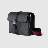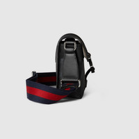 Part of the Cruise 2025 selection, super mini bags are ideal for everyday looks. Revitalizing functional pieces with a modern-day interpretation, everyday accessories are defined by the emblematic monogram. Crafted from black GG Supreme canvas, this super mini bag is completed with a Web strap, adding a pop of color to the accessory. - Black GG Supreme canvas - Black leather trim - Blue and red Web - Cotton linen lining - Inside: 3 card slots - Adjustable canvas shoulder strap with 21.6" drop - Metal hook closure - Weight: 0.9lbs approximately - Super mini: 7.2"W x 5.3"H x 2.7"D - Made in Italy