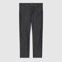 Taking cues from the archive, Exquisite Gucci continues the narrative composed of symbols, silhouettes and prints defining the ready-to-wear and accessories' selection. These tapered denim pants have a Horsebit on each back pocket—one of the most recognizable symbols of the House. - Dark blue cotton - Gucci Made In Italy leather label - Five-pocket style - Back pockets with Horsebit detail - Tapered fit with a cropped leg - Leg opening: 7" - Made in Italy - The model is 6'1" and is wearing size 32 (IT).