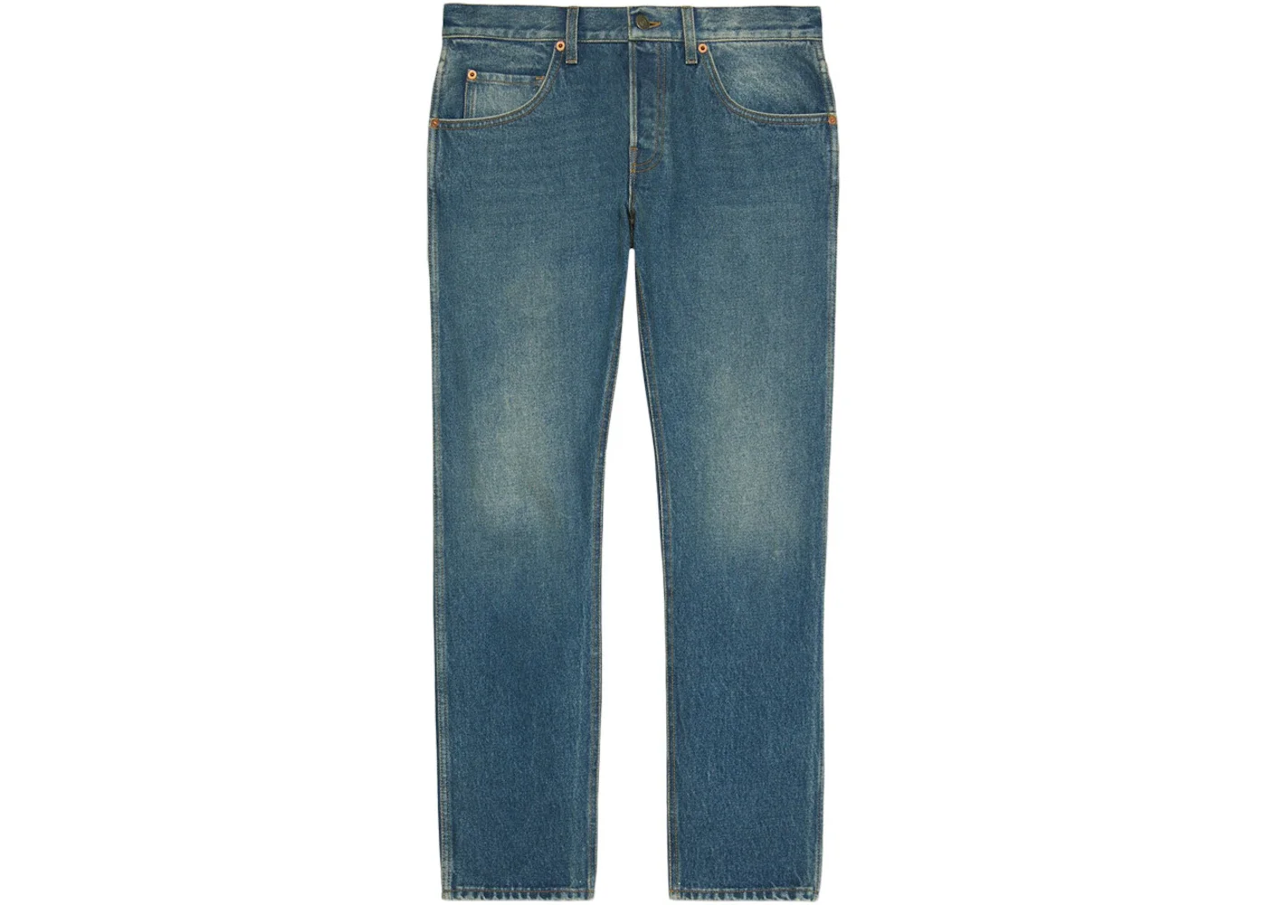 Gucci Tapered Fit Washed Marbled Denim Jeans Stonewashed Blue