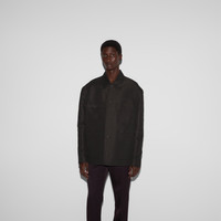 Creative Director Sabato De Sarno reinvents the essential men's wardrobe for the Fall Winter 2024 collection, with wearabilty and fit becoming key statements. Jackets take on a more sartorial appeal in a confident new color palette, here this style appears in a dark brown technical cotton complete with a Gucci print on the collar. - Dark brown technical cotton - Leather trim - Covered buttons - Gucci print on the collar - Dark brown lining - Point collar - Three patch pockets - One patch pocket with button closure - Inside pocket - Shoulder drop: 22"; based on a size 48 - Chest: 25.2"; based on a size 48 - Sleeves length: 37"; based on a size 48 - Button closure - Oversize fit - Length: 29.5" based on a size 48 - Made in Italy - The product shown in this image is a size 48 (IT)
