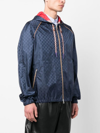 GG Supreme-jacquard hooded jacket Blending heritage with contemporary design, this lightweight Gucci jacket boasts the House's GG Supreme print in a jacquard weave alongside piped-trim details, a drawstring hood and two side zip-fastening pockets. Made in Italy Composition Polyamide 100%, Leather 100%
