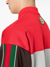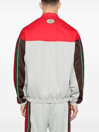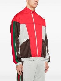 Crafted from a soft technical jersey, this relaxed-fit zip jacket reveals color-blocked panels in red, grey and black. In a combination of traditional House codes, the green and red Web detail defines the arms, while the Interlocking G takes on an embroidered finish. Influences drawn from the sportswear and leisurewear worlds collide into an inherently Gucci style juxtaposing athletic inspired shapes with a focus on detail. - Red and grey technical jersey - Contrast piping - Green and red Web stripe - Interlocking G embroidered patch - Fully lined - Stand collar with two snap buttons - Long sleeves - Contrasting hem and cuffs - Zip closure - Length: 28.3", based on a size small - The product shown in this image is a size small
