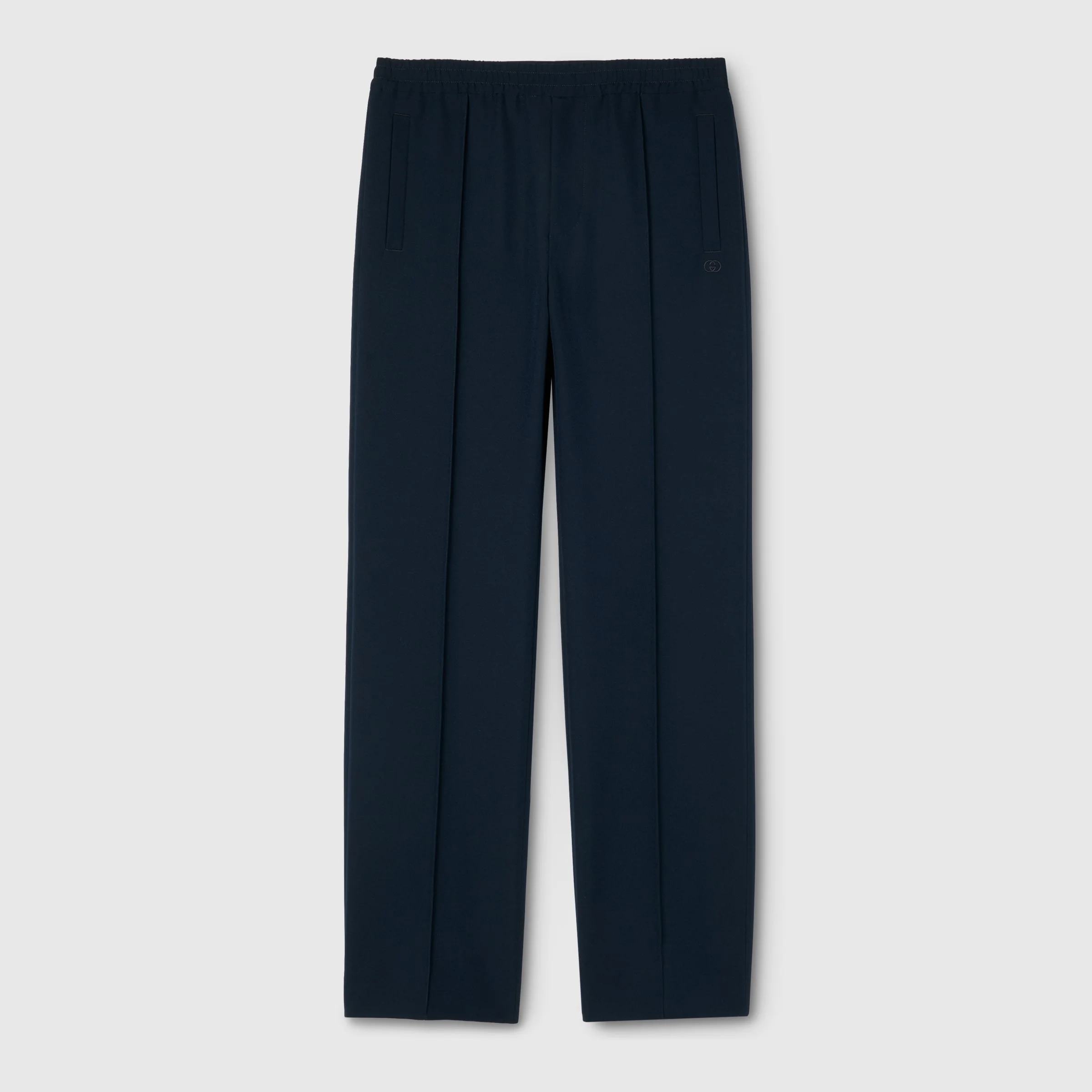 The GG, the logo and the Web embody the brand's legacy, Italian roots, and commitment to savoir-faire, expressed through carefully executed techniques. Made from dark blue technical panama, these sportswear pants feature a Web detail on the waistband. - Dark blue technical panama - Web detail on the waistband - Elastic waistband with drawstring - Side pockets - Back pockets - Length: 43.3"; Leg opening: 9.4"; based on size 46 (IT)
