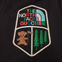This coat is part of The North Face x Gucci collection, a collaboration connecting two brands with similar history and values in celebration of the spirit of exploration. For this new chapter, the logo is presented in a multicolor variation. The North Face has a rich archive pushing innovation and breaking the rules in creating styles with unique and distinguishing design details. - Dark pink lightweight technical cotton at the front, black at the back - Black sleeves, blue hood and pockets - The North Face x Gucci - Multicolor The North Face x Gucci logo with trees and teddy bear patch on the sleeve - Multicolor The North Face x Gucci logo embroidery on the front - Multicolor The North Face x Gucci logo patch on the back - Fixed hood with drawstring - High neck - Front patch pockets - Snap button closure - Made in Vietnam - The product shown in this image is a size extra large