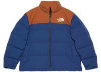 This down jacket is part of The North Face x Gucci collection, a collaboration connecting two brands with similar history and values in celebration of the spirit of exploration. The pieces are characterized by a selection of bright colors and prints featuring The North Face x Gucci logo, flowers and woodland-inspired motifs. - Blue and brown technical cotton with down padding - The North Face x Gucci logo embroidery - The North Face x Gucci - Front zip closure - Front pockets - Made in Vietnam - The model is 6'1" tall. The product shown in this image is a size XXL