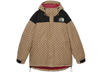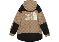 This down jacket is part of The North Face x Gucci collection, a collaboration connecting two brands with similar history and values in celebration of the spirit of exploration. The pieces are characterized by a selection of bright colors and prints featuring The North Face x Gucci logo, flowers and woodland-inspired motifs. - Beige and ebony GG canvas with black canvas and down padding - The North Face x Gucci logo embroidery - The North Face x Gucci - Hooded - Zip and snap button closure - Internal drawstring details - Made in Italy - The model is 6' tall. The product shown in this image is a size XXL