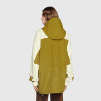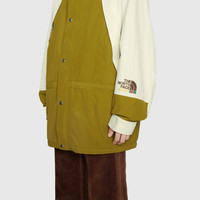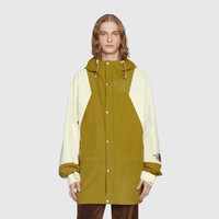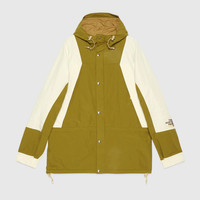 This jacket is part of The North Face x Gucci collection, a collaboration connecting two brands with similar history and values in celebration of the spirit of exploration. The pieces are characterized by a selection of bright colors and prints featuring The North Face x Gucci logo, flowers and woodland-inspired motifs. - Dark green and beige lightweight technical cotton - The North Face x Gucci logo embroidery - The North Face x Gucci - Lined - Covered snap and zip closure - Internal drawstring details - Front pockets - Made in Vietnam - The model is 6' tall. The product shown in this image is a size XXL