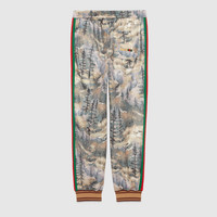 This pair of jogging pants is part of The North Face x Gucci collection, a collaboration connecting two brands with similar history and values in celebration of the spirit of exploration. The pieces are characterized by a selection of bright colors and prints featuring The North Face x Gucci logo, flowers and woodland-inspired motifs. - The North Face x Gucci forest print technical jersey - Side Web stripe - The North Face x Gucci - Elastic waistband with drawstring - Front zip pockets - Single back pocket - Made in Italy - The model is 6'1" tall.