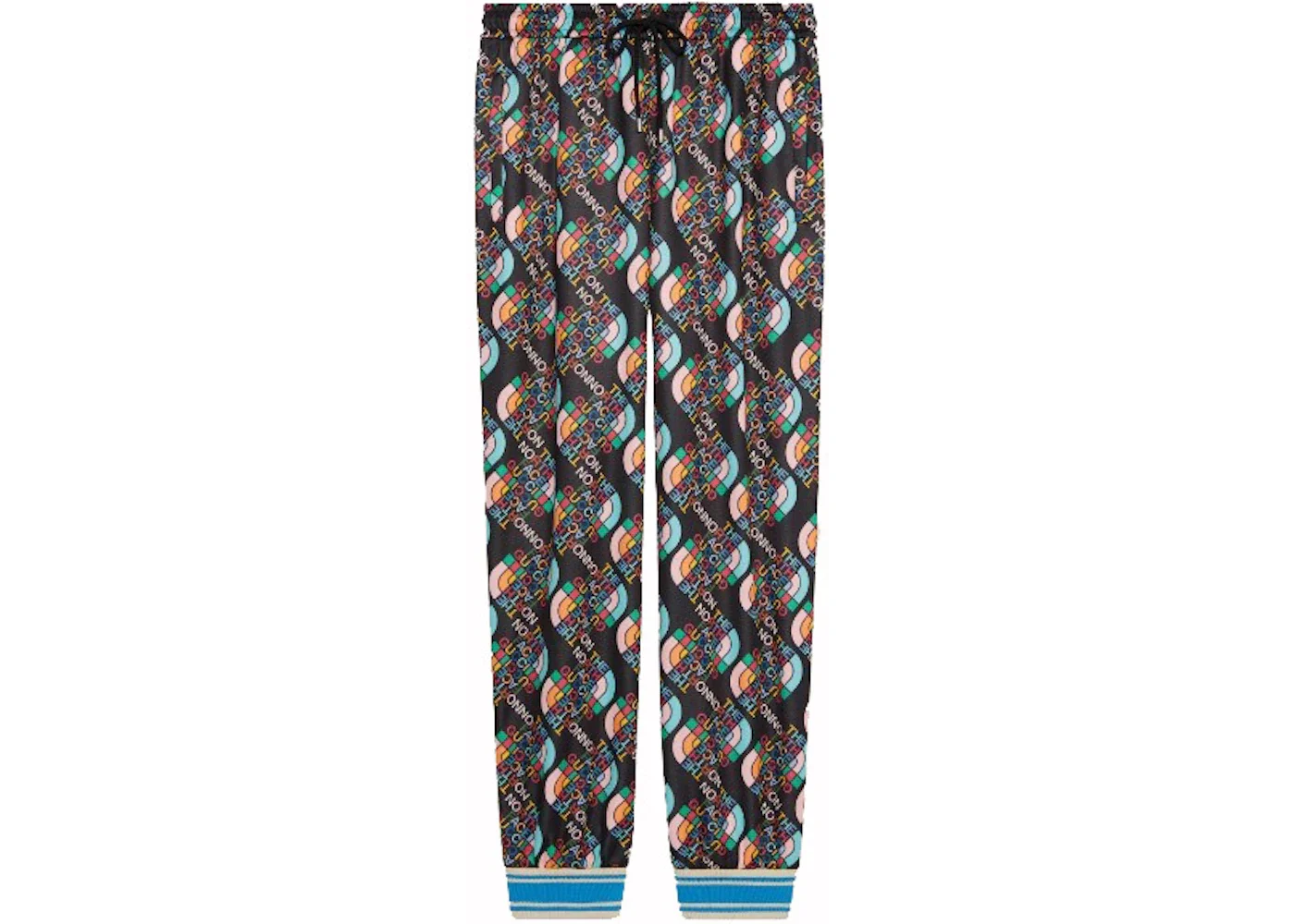 These jogging pants are part of The North Face x Gucci collection, a collaboration connecting two brands with similar history and values in celebration of the spirit of exploration. For this new chapter, the logo is presented in a multicolor variation. The North Face has a rich archive pushing innovation and breaking the rules in creating styles with unique and distinguishing design details. - Multicolor The North Face x Gucci logo print black technical jersey - The North Face x Gucci - Elastic waistband with drawstring - Knit rib cuffs - Made in Italy - The model is 6'1" tall. The product shown in this image is a size small