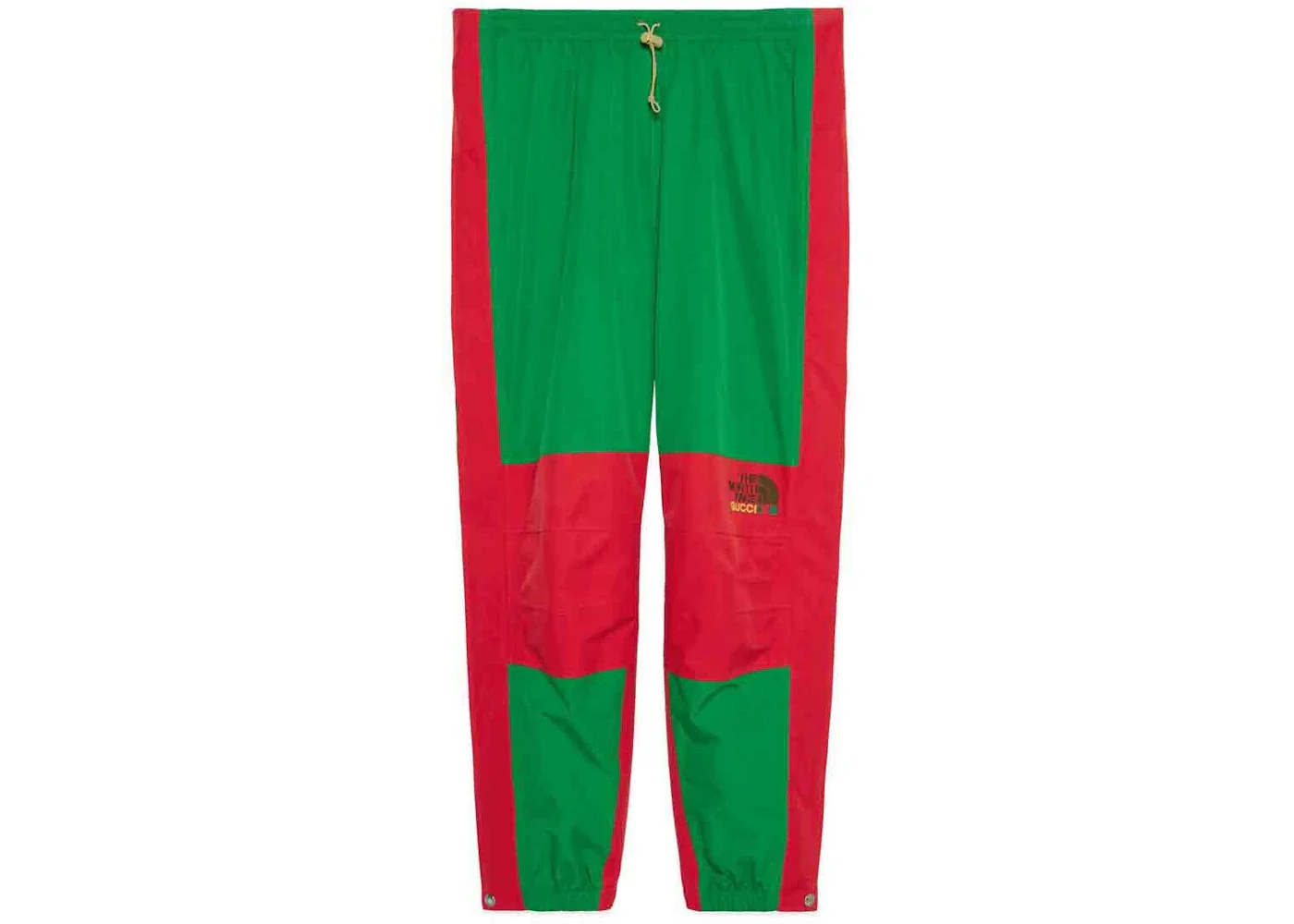 These pants are part of The North Face x Gucci collection, a collaboration connecting two brands with similar history and values in celebration of the spirit of exploration. The pieces are characterized by a selection of bright colors and prints featuring The North Face x Gucci logo, flowers and woodland-inspired motifs. - Green and red technical cotton - The North Face x Gucci logo embroidery - The North Face x Gucci - Lined - Elastic waistband - Elastic leg opening - Single back pocket - Made in Vietnam - The model is 6' tall. The product shown in this image is a size large