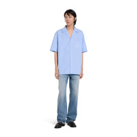 The archival logo 'Gucci Firenze Since 1921' has been reworked in a range of techniques, as the single source of inspiration fuels multiple expressions throughout the collection. Crafted from thin striped cotton, this shirt is enriched with the 'Gucci Firenze Since 1921' print. - Light blue thin striped cotton - 'Gucci Firenze Since 1921' print - Notch collar - Dropped shoulder - Short sleeves - Chest pocket - Side slits - Button closure - Regular fit - Length: 29.5"; Shoulder: 20.1"; Chest: 46.9"; Sleeves length: 20.9"; based on a size 48 IT - Made in Italy - Fabric: 100% Cotton