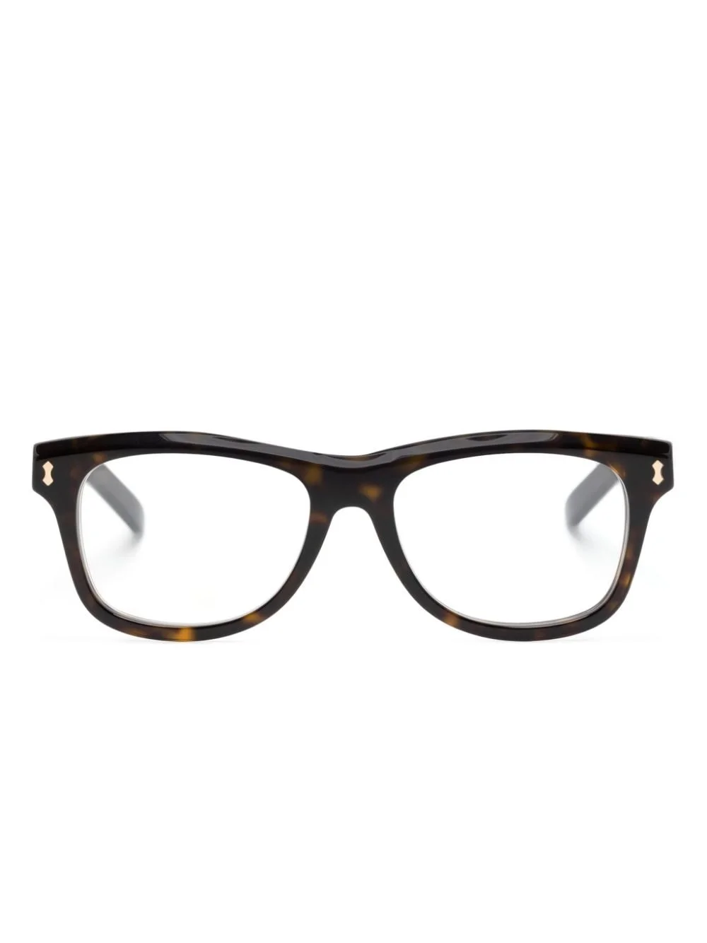 tortoiseshell square-frame glasses Highlights - Havana brown - Acetate - Tortoiseshell effect - Square frame - Clear lenses - Logo-engraved arm - Straight arms with curved tips - These glasses come with a protective case. - All glasses from farfetch are sold as non-prescription frames. Made in Italy Composition Outer: Acetate 100% SIZE & FIT Measurement Arm Length 5.7 in(14.5 cm) Bridge Width 0.7 in(1.8 cm) Lens Diameter 2.12 in(5.4 cm) Total Width 5.51 in(14 cm)