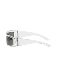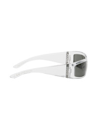 Rectangular wraparound-style transparent acetate-frame sunglasses. · Gray lenses · Integrated nose pads · Logo plaque at hinges · Hardside case included · Size: 64.14 130 Supplier color: Crystal/Crystal/Grey