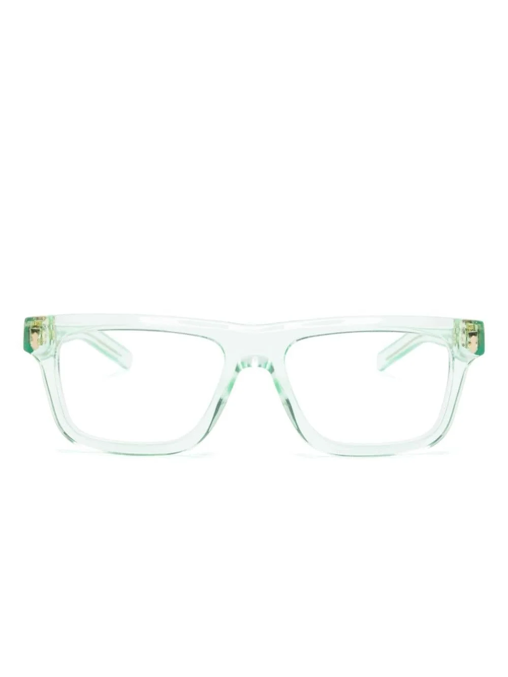 transparent square-frame glasses Highlights - Light green - Acetate - Transparent design - Square frame - Clear lenses - Logo-debossed arm - Gold-tone hardware - Straight arms with curved tips - These glasses come with a protective case. - All glasses from farfetch are sold as non-prescription frames. Made in Italy Composition Acetate 100% SIZE & FIT Measurement Arm Length 5.7 in(14.5 cm) Bridge Width 0.7 in(1.8 cm) Lens Diameter 2.12 in(5.4 cm) Total Width 5.51 in(14 cm)