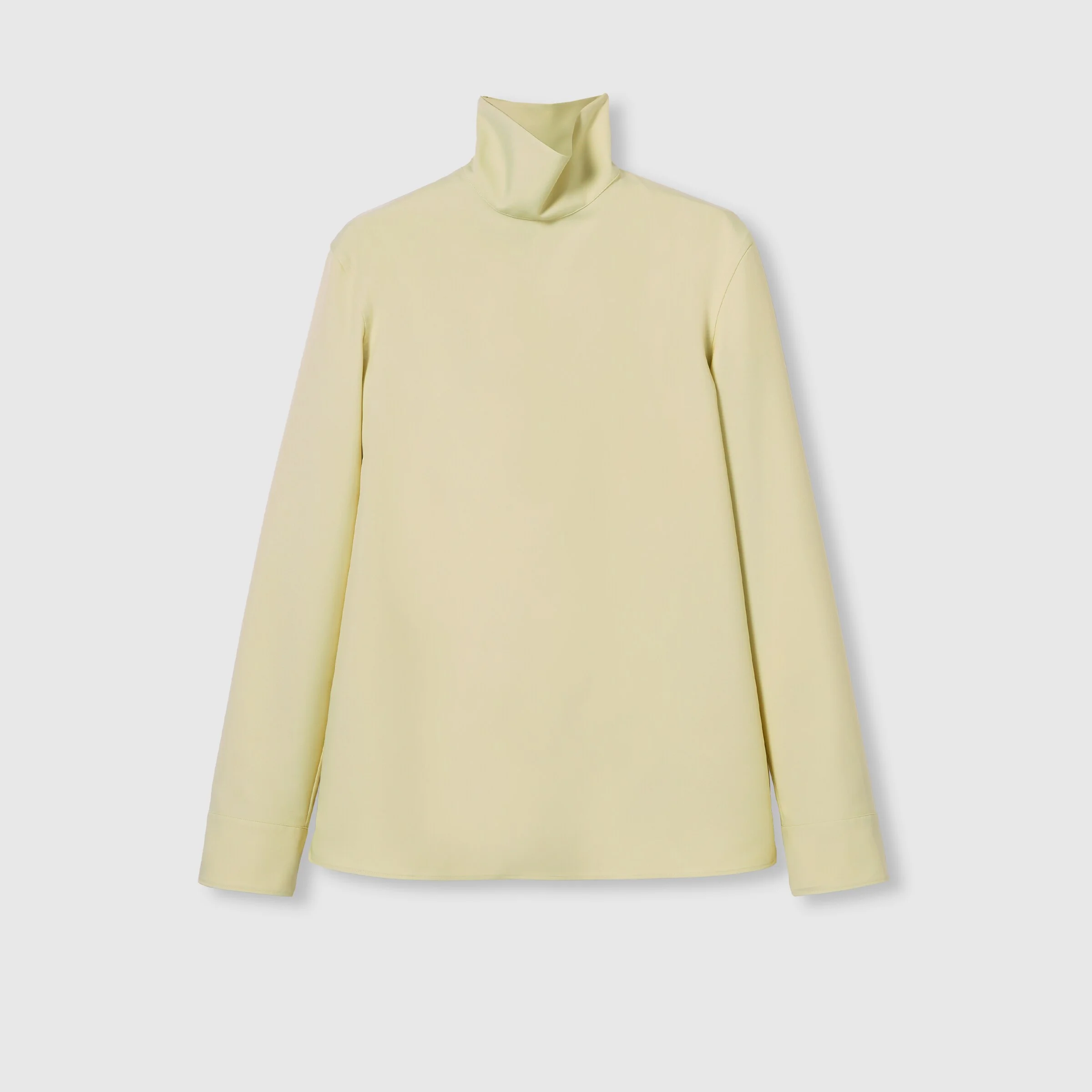 In the Fall Winter 2025 collection, tailoring is reimagined with unexpected ease. A modern take on a classic design, this shirt is characterized by its clean construction and distinctive back closure. The concealed button placket and buttoned cuffs enhance the minimal silhouette, offering a refined, contemporary look. - Pale yellow polyester twill - Stand collar - Long sleeves - Buttoned cuffs - Covered button closure at the back - Regular fit - Total length: 27.9"; Shoulder: 18.7"; Chest: 20"; Sleeve length: 25.5"; (size 46 IT) - Made in Italy