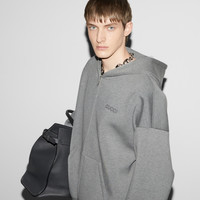 Creative Director Sabato De Sarno reinvents the essential men's wardrobe for the Fall Winter 2024 collection, with wearabilty and fit becoming key statements. Knitwear pieces are updated with modern silhouettes in high-quality fabrics. Here, a Gucci embroidery enriches this grey bonded viscose jersey sweatshirt. - Grey bonded viscose jersey - Gucci embroidery - Fixed hood - Front pouch pocket - Zip puller with Gucci logo - Rib trim - Shoulder drop: 28.5"; based on a size M - Chest: 25.6": based on a size M - Sleeves length; 22"; based on a size M - Zip closure - Oversize fit - Length: 28.5"; based on a size M - Made in Italy - The product shown in this image is a size medium