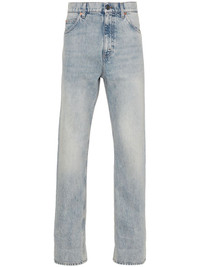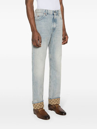 mid-rise straight-leg jeans Highlights - Blue - Cotton - Washed denim - Whiskering effect - Belt loops - Logo-engraved buttons - Logo patch to the rear - Mid-rise - Straight leg - Classic five pockets - Zip fly fastening - Front button fastening - Gg supreme canvas lining Made in Italy Composition Outer: Cotton 100% Lining: Polyester 65%, Cotton 35% SIZE & FIT Model measurements Height 6 ft 2 in(1.89 m) Bust/Chest 39.76 in(101 cm) Hips 37.4 in(95 cm) Waist 29.92 in(76 cm) Washing instructions Dry Clean Only