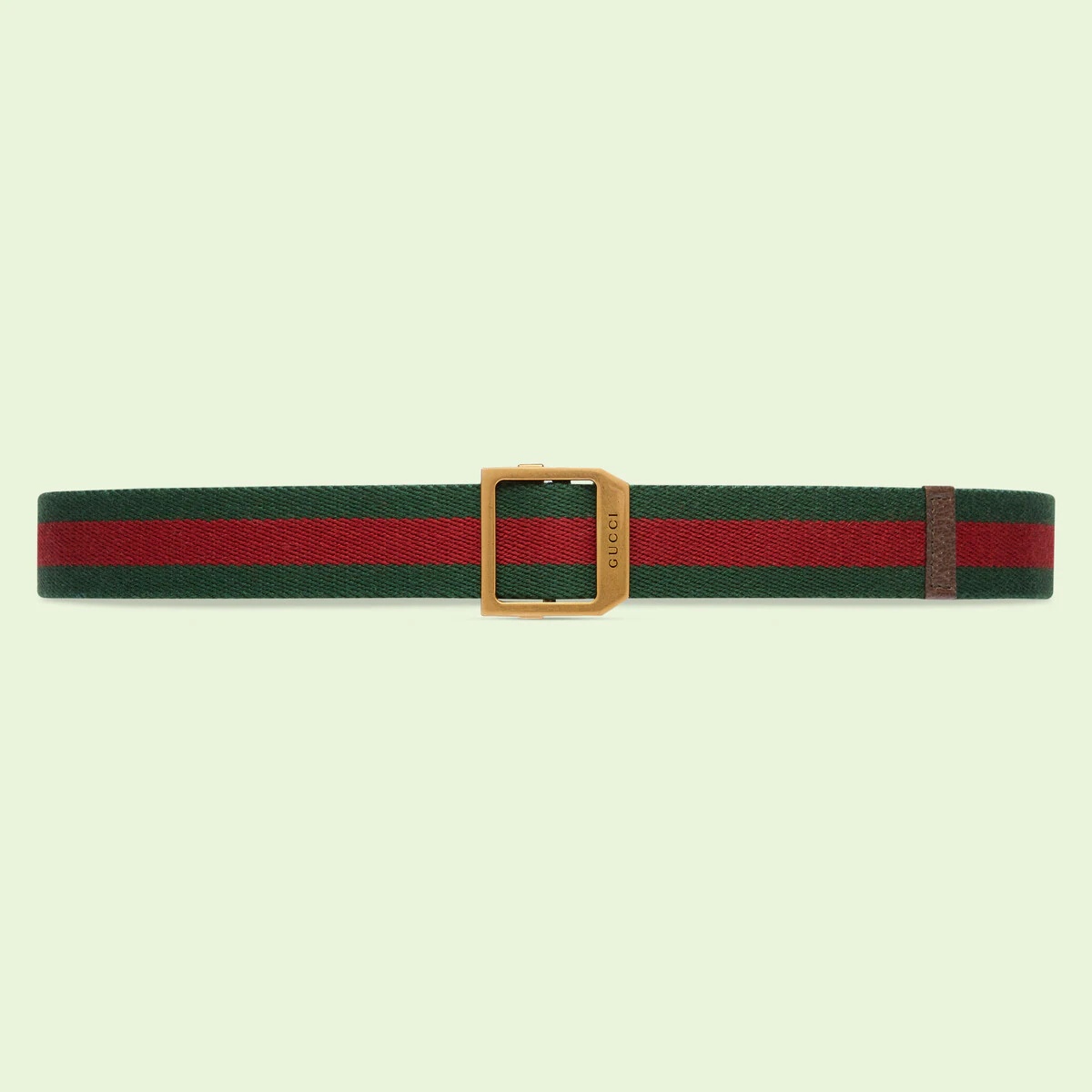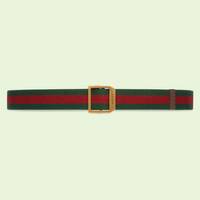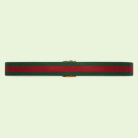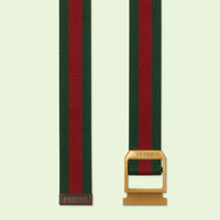 The green and red Web connects the House's contemporary design narrative with its equestrian past. Here, the emblematic stripes take the form of a colorful belt. - Green and red Web fabric - Antique gold-toned hardware - Rectangular buckle with Gucci logo - This belt is intended to be worn on the hips. Please refer to the size guide to find your size. - 1" belt width - Made in Italy