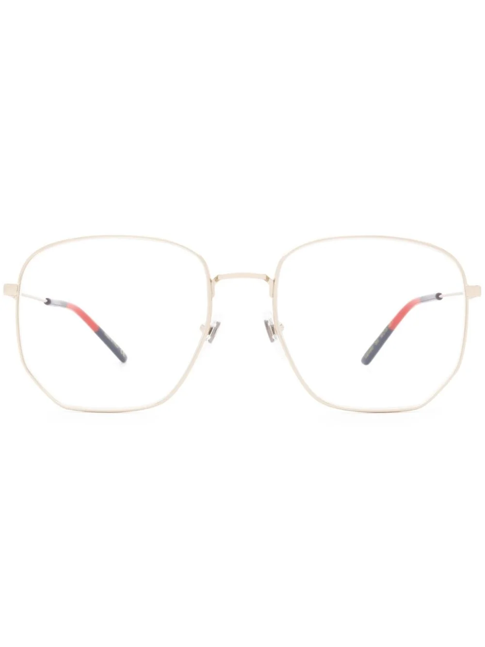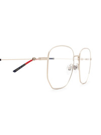 Web-trim glasses Highlights - Silver-tone - Metal/acetate - Hexagonal frame - Clear lenses - Nose pads - Straight arms - Signature interlocking g logo - Signature web-stripe trim - Curved tips - All glasses from farfetch are sold as non-prescription frames. - These glasses come with a protective case. Made in Italy Composition Metal (Other) 80%, Acetate 20% SIZE & FIT Measurement Bridge Width 0.7 in(1.8 cm) Lens Diameter 2.2 in(5.6 cm) Total Width 5.51 in(14 cm) Arm Length 5.51 in(14 cm)