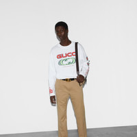 Emblematic codes of the House and refined patterns are reinterpreted in contemporary ways for the Pre-Fall collection. These pants with a regular fit are presented in cotton gabardine. The Gucci Web insert on the side slit pockets adds a twist, for a striking seasonal addition to your wardrobe. - Beige cotton gabardine - Gucci Web insert - Belt loops - Two side slit pockets - Two back pockets - Waist: 17.1"; based on size 48 (IT) - Hips: 21.2"; based on size 48 (IT) - Hook and zip closure - Cut for a regular fit - Length: 42"; based on size 48 (IT) - Leg opening: 8.07"; based on size 48 (IT) - The product shown in the image is a size 48 (IT)