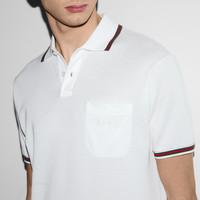 Classics such as soft knitwear and polo shirts throughout the Cruise 2025 collection stand out with subtle details that elevate everyday looks. This regular fit polo shirt is stated in a stretch cotton piquet and enriched with a Gucci embroidery and Web detail across the collar. - Off white stretch cotton piquet - Web trim - Gucci embroidery - Polo collar - Dropped shoulder - Short sleeves - Chest pocket - Rib trim - Button closure - Regular fit - Length: 29.5"; Shoulder: 18.7"; Chest: 22.4"; Sleeves length: 9.4"; based on a size M - Made in Italy - The product shown in this image is a size small