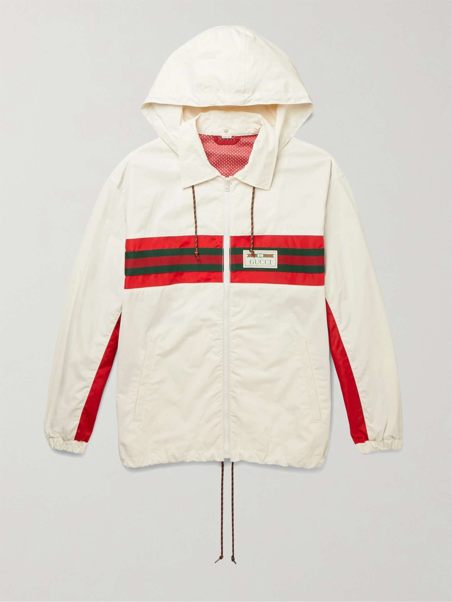 Logo-Appliquéd Striped Hooded Shell Track Jacket